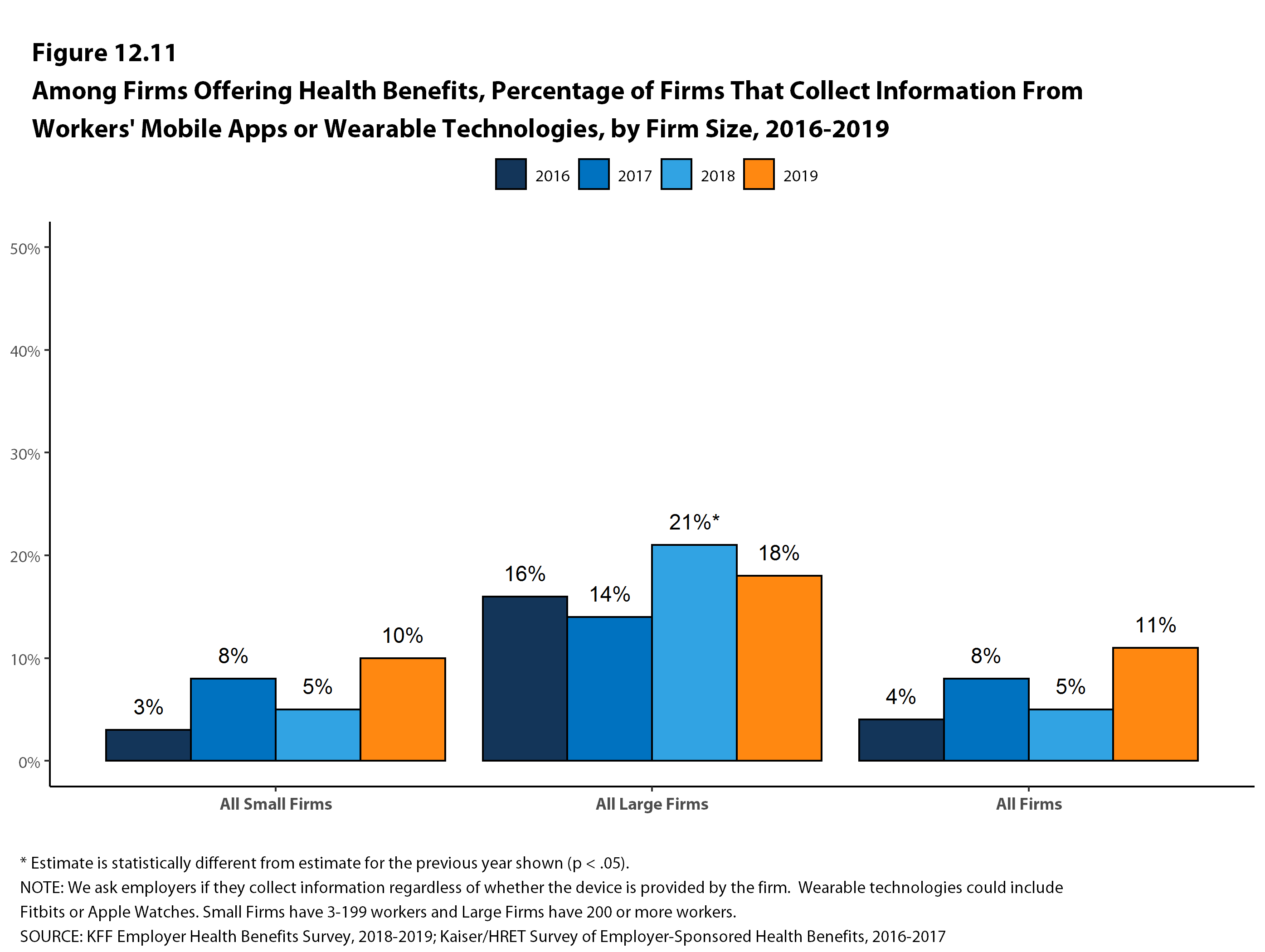 Around 11% of employers added wearables to their wellness plans with the goal of incentivizing healthier behavior among employees in order to reduce medical costs and improve employee health.